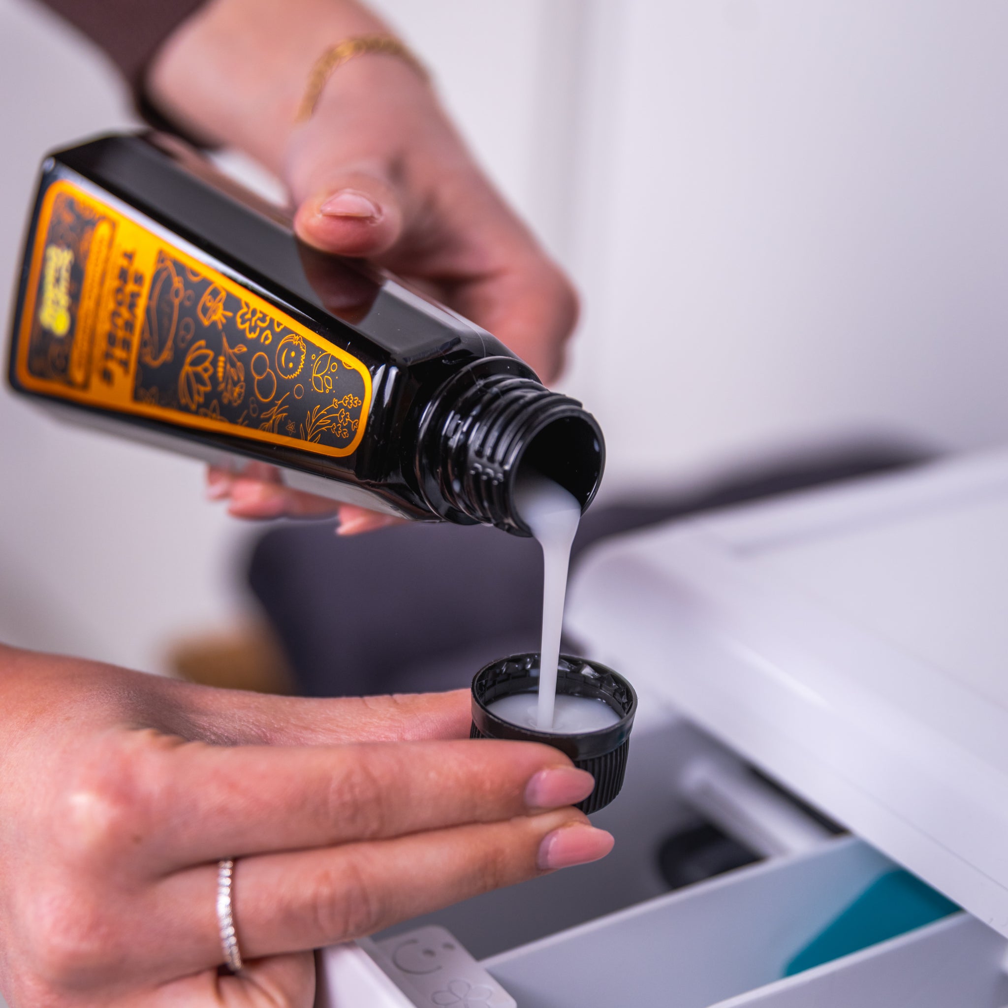 - Mosógépben: 10 ml (1 kupak) 4,5 kg ruhához